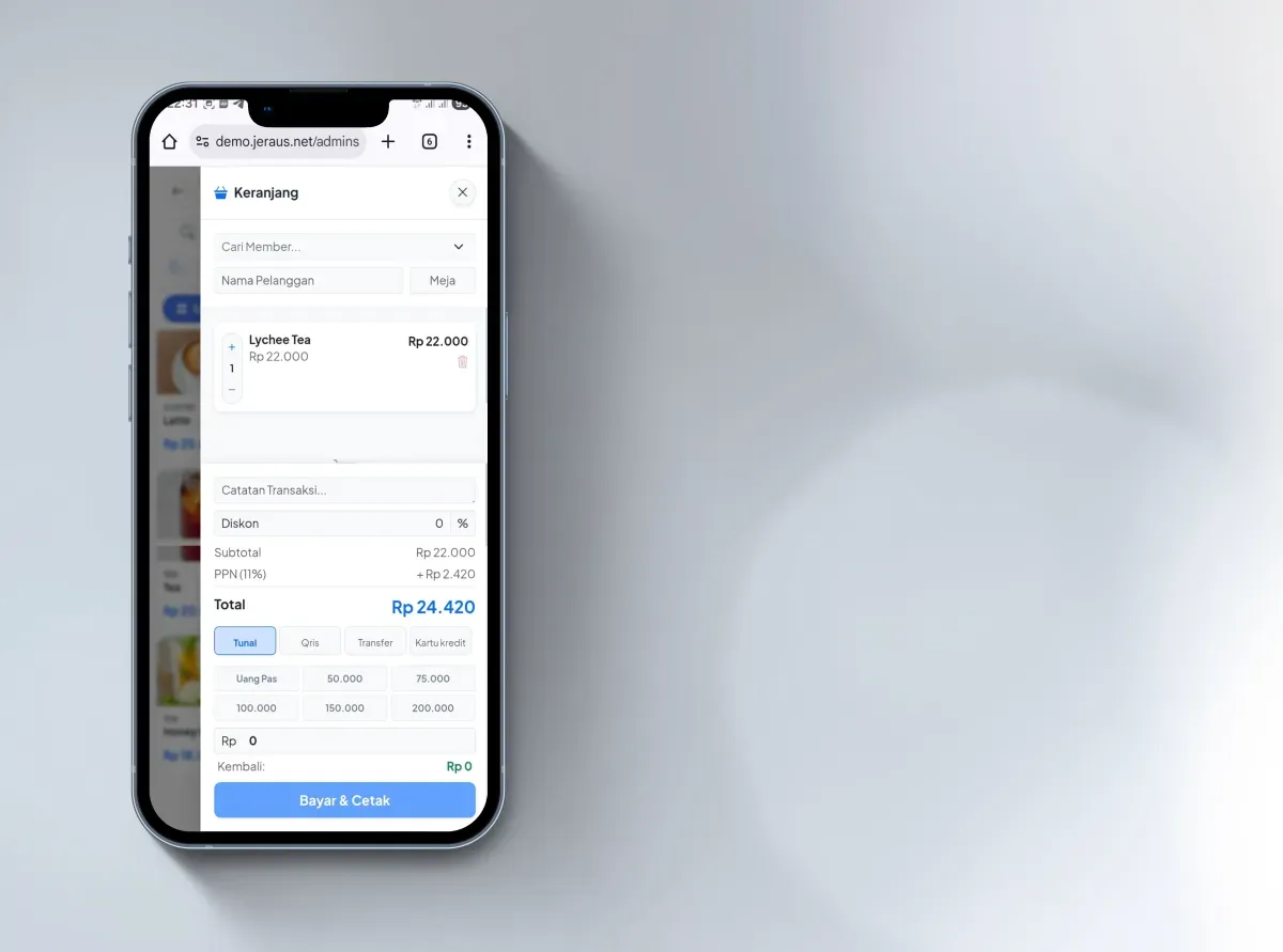Akses sistem kasir modern langsung dari smartphone, simpel dan elegan.