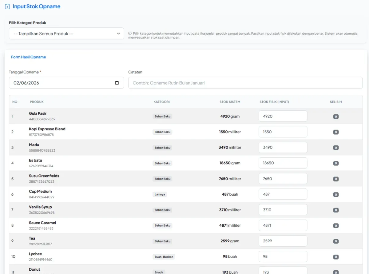 - ✓ Sistem Inventori & Stock Opname